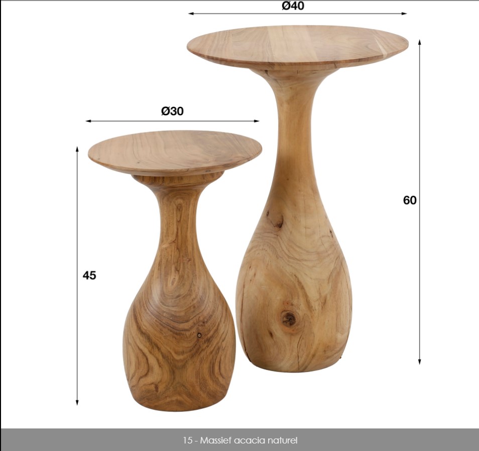 Bijzettafel-set/2-massieve-voet-druppel